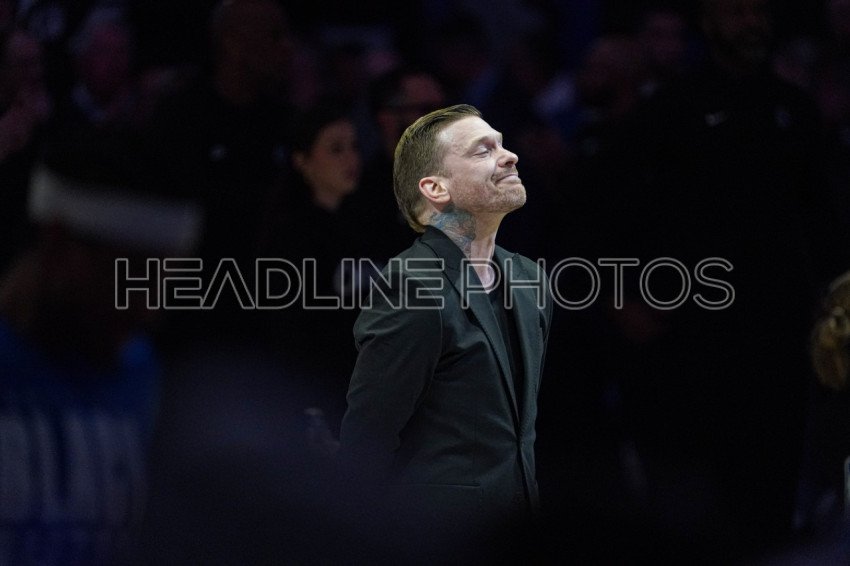 Orlando, Florida, USA, February 13, 2024, Brent Smith sings the National anthem before the Oklahoma Thunder vs the Orlando Magic game at the Kia Center. (Photo Credit: Marty Jean-Louis)