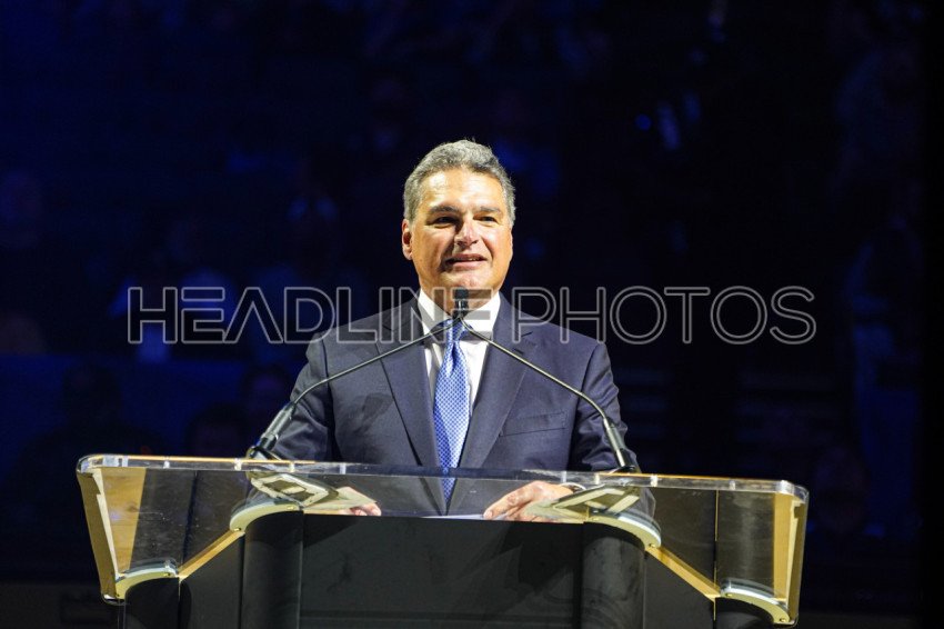 Orlando, Florida, USA, February 13, 2024, Orlando Magic CEO Alex Martins speaks During the Shaquille O'Neal Jersey Retirement Ceremony at the Kia Center. (Photo Credit: Marty Jean-Louis)