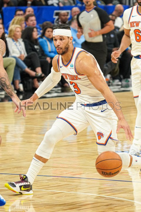 Orlando, Florida, USA, February 14, 2024, New York Knicks forward Josh Hart #3 rushes forward in the first half at the Kia Center. (Photo Credit: Marty Jean-Louis)