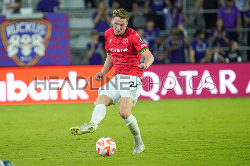 Orlando, Florida, USA, Calvary FC, Calvary FC midfielder Eryk Kobza #24 makes a pass at Inter&Co Stadium in the CONCACAF Champions Cup Match. (Photo Credit: Marty Jean-Louis)