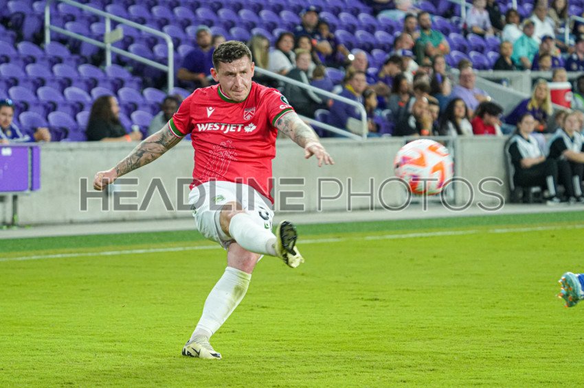 Orlando, Florida, USA, Calvary FC, Calvary winger Fraser Aird #33 makes a pass at Inter&Co Stadium in the CONCACAF Champions Cup Match. (Photo Credit: Marty Jean-Louis)