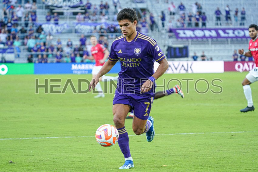 Orlando, Florida, USA, Calvary FC, Orlando City player Ramiro Enriquez #7 makes a run at Inter&Co Stadium in the CONCACAF Champions Cup Match. (Photo Credit: Marty Jean-Louis)