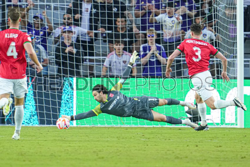 Orlando, Florida, USA, Calvary FC, Calvary FC goalkeeper Marco Carducci #1 makes a save at Inter&Co Stadium in the CONCACAF Champions Cup Match. (Photo Credit: Marty Jean-Louis)