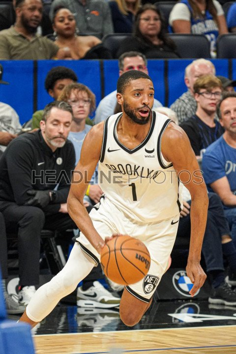 Orlando, Florida, USA, February 27, 2024, Brooklyn Nets forward Mikal Bridges #1 runs forward at the Kia Center. (Photo Credit: Marty Jean-Louis)