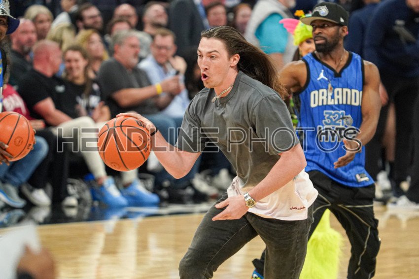 Orlando, Florida, USA, February 27, 2024, Kansas City Chief Punter Tommy Townsend playing some basketball during half time at the Kia Center. (Photo Credit: Marty Jean-Louis)