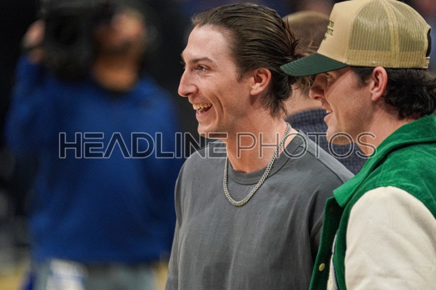 Orlando, Florida, USA, February 27, 2024, Kansas City Chief Punter Tommy Townsend speaking with a friend during the Brooklyn Nets vs Orlando Magic game at the Kia Center. (Photo Credit: Marty Jean-Louis)