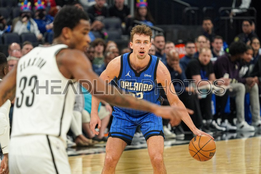 Orlando, Florida, USA, February 27, 2024, Orlando Magic forward Franz Wagner #22 dribbles the ball forward in the first half at the Kia Center. (Photo Credit: Marty Jean-Louis)