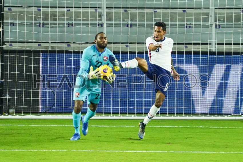 Orlando, Florida, USA, January 31, 2021, Trinidad and Tobago Goalkeeper Adrian Foncette #22 makes a save an International Friendly Match against USA. (Photo Credit: Marty Jean-Louis)
