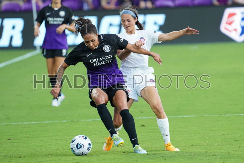 Orlando, Florida, USA, May 16, 2021, Orlando Pride Forward Sydney Leroux #2 fight to keep the ball at Exploria Stadium (Photo Credit: Marty Jean-Louis)