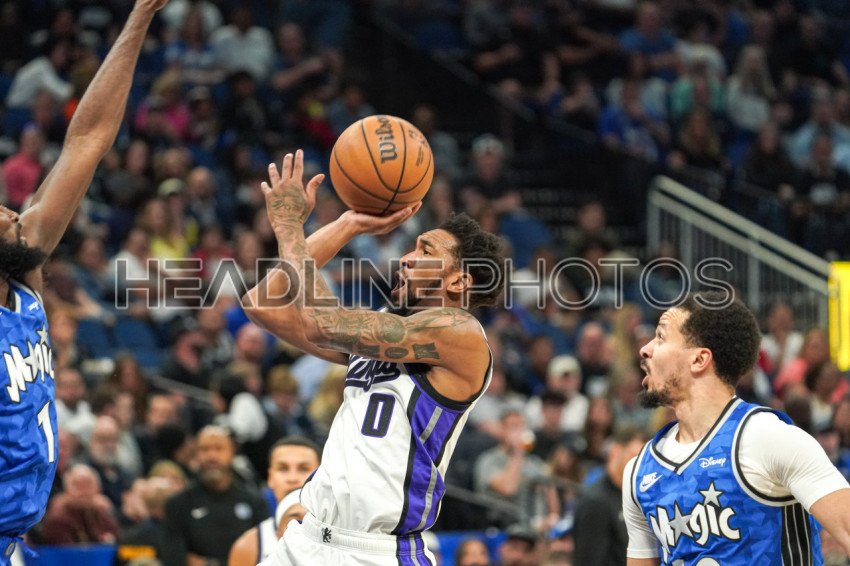 Orlando, Florida, USA, March 23, 2024, Sacramento Kings guard Malik Monk #0 attempt to make a shot at the Kia Center. (Photo Credit: Marty Jean-Louis)