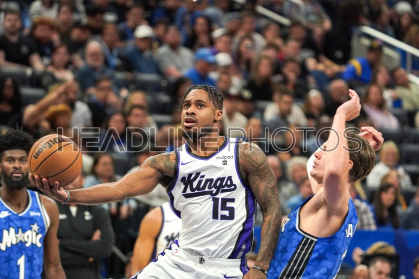 Orlando, Florida, USA, March 23, 2024, Sacramento Kings guard Davion Mitchell #15 attempt to score at the Kia Center. (Photo Credit: Marty Jean-Louis)