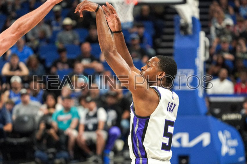Orlando, Florida, USA, March 23, 2024, Sacramento Kings guard De'Aaron Fox #5 shoots a three in the first half at the Kia Center. (Photo Credit: Marty Jean-Louis)