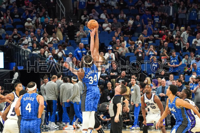 Orlando, Florida, USA, March 23, 2024, Orlando Magic center Wendell Carter Jr #34 wins the tip-off at the Kia Center. (Photo Credit: Marty Jean-Louis)