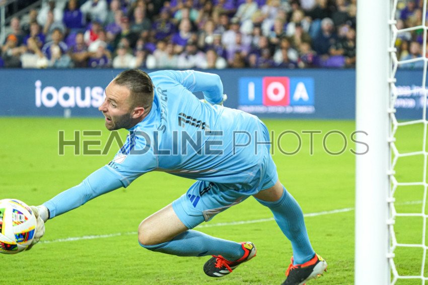 Orlando, Florida, USA, March 23, 2024, Austin FC goalkeeper Brad Stuver #1 makes a save at Inter&Co Stadium. (Photo Credit: Marty Jean-Louis)