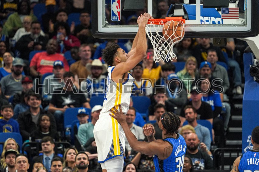 Orlando, Florida, USA, March 27, 2024, Golden State Warriors Trayce Jackson-Davis #32 makes a dunk in the first half at the Kia Center. (Photo Credit: Marty Jean-Louis)
