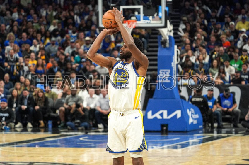 Orlando, Florida, USA, March 27, 2024, Golden State Warriors forward Andrew Wiggins #22 shoots a th during the second half at the Kia Center. (Photo Credit: Marty Jean-Louis)