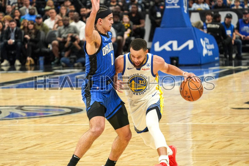 Orlando, Florida, USA, March 27, 2024, Golden State Warriors guard Stephen Curry #30 attempt to run pass Anthony Black #0 during the second half at the Kia Center. (Photo Credit: Marty Jean-Louis)