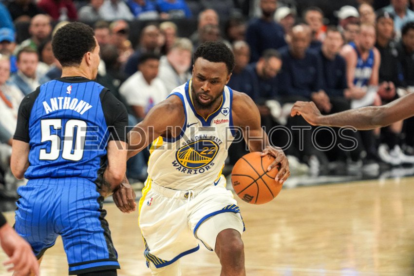 Orlando, Florida, USA, March 27, 2024, Golden State Warriors forward Andrew Wiggins #22 attempt to run pass Cole Anthony #50 during the second half at the Kia Center. (Photo Credit: Marty Jean-Louis)
