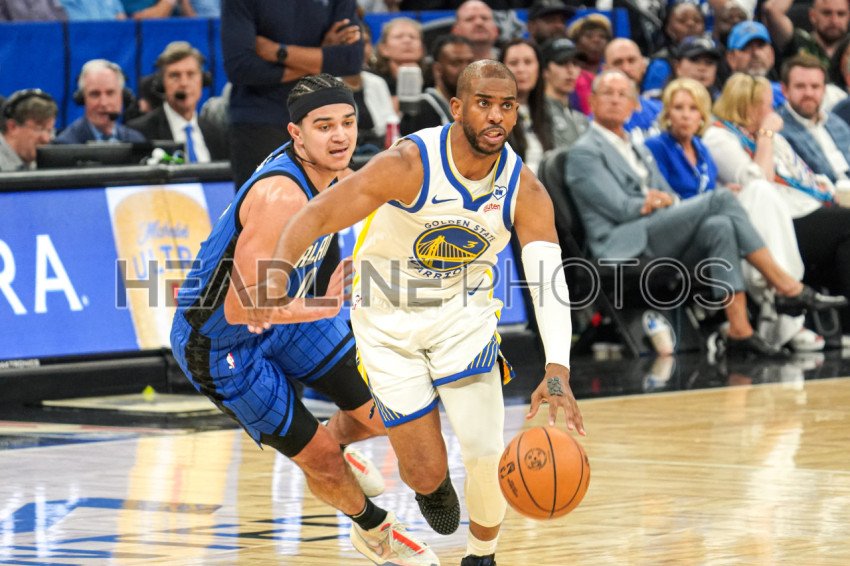 Orlando, Florida, USA, March 27, 2024, Golden State Warriors guard Chris Paul #3 runs pass Anthony Black #0 in the second half at the Kia Center. (Photo Credit: Marty Jean-Louis)