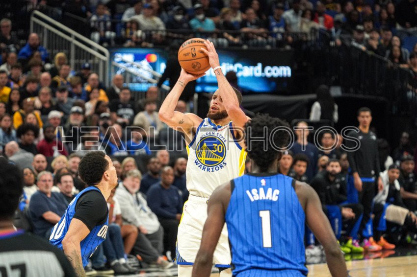 Orlando, Florida, USA, March 27, 2024, Golden State Warriors guard Stephen Curry #30 shoots a three during the second half at the Kia Center. (Photo Credit: Marty Jean-Louis)