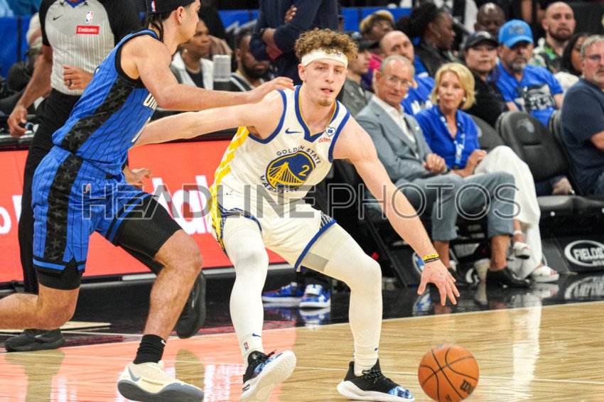 Orlando, Florida, USA, March 27, 2024, Golden State Warriors guard Brandin Podziemski #2 attempt to run pass Anthony Black #0 at the Kia Center. (Photo Credit: Marty Jean-Louis)