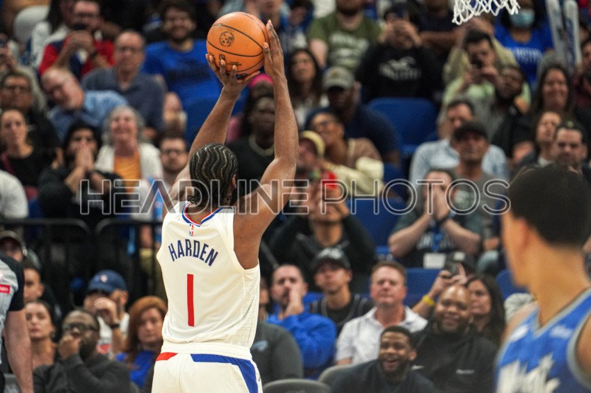Orlando, Florida, USA, March 29, 2024, Los Angeles Clippers guard James Harden #1 shoots a techincal at the Kia Center. (Photo Credit: Marty Jean-Louis)