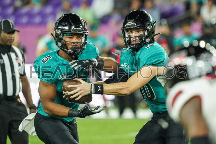 Orlando, Florida, USA, December 15, 2021, Coastal Carolina Chanticleers Quarterback Grayson McCall #10 makes a pass to Shermari Jones #5 during the 7th Annual Tailgreeter Cure Bowl at Exploria Stadium (Photo Credit: Marty Jean-Louis)