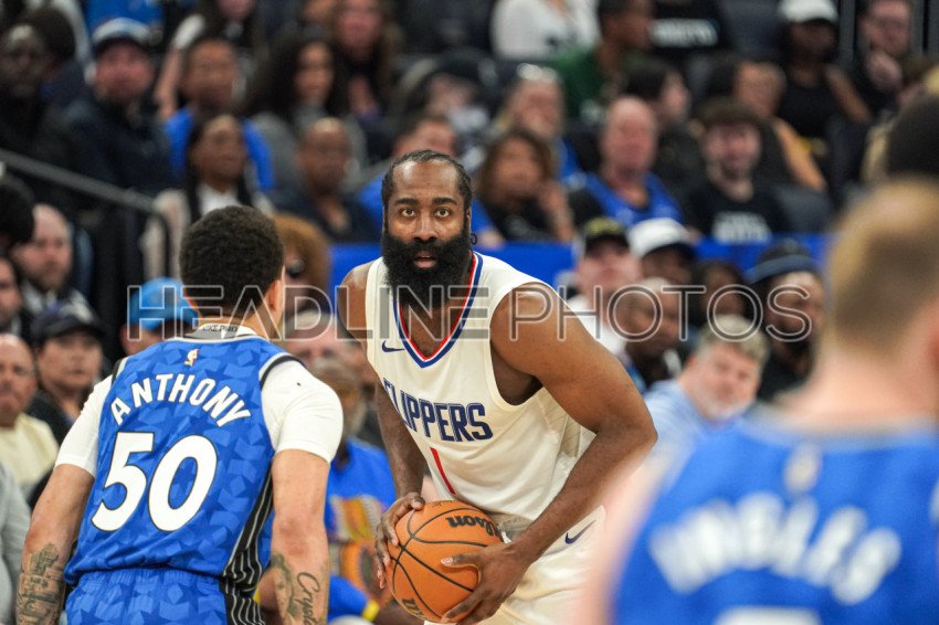 Orlando, Florida, USA, March 29, 2024, Los Angeles Clippers guard James Harden #1 look to mke a pass during the second half at the Kia Center. (Photo Credit: Marty Jean-Louis)