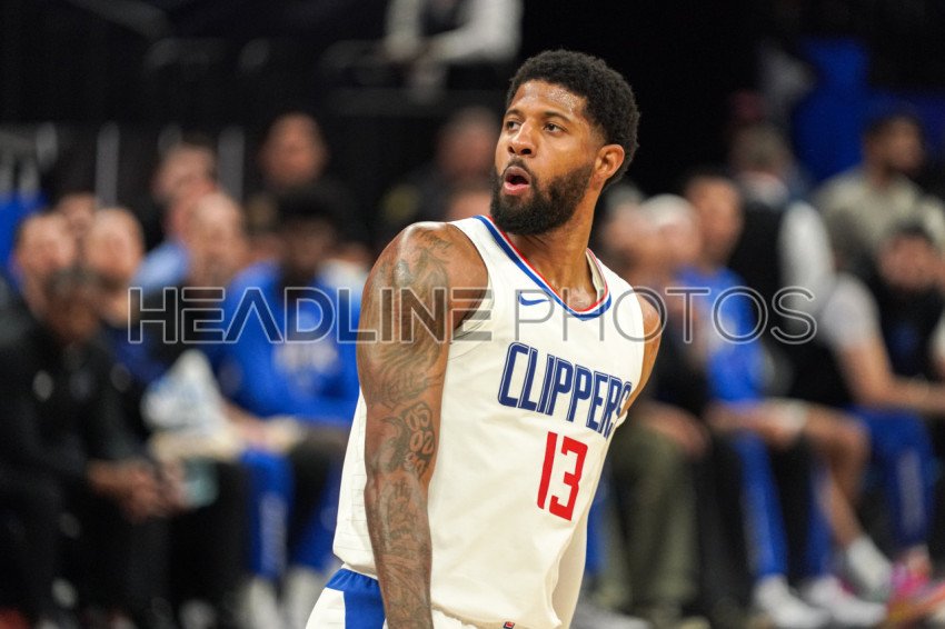 Orlando, Florida, USA, March 29, 2024, Los Angeles Clippers forward Paul George #13 reacts after taking a shot at the Kia Center. (Photo Credit: Marty Jean-Louis)