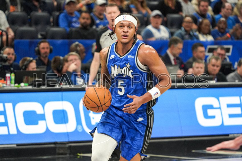 Orlando, Florida, USA, March 30, 2024, Orlando Magic forward Paolo Banchero #5 ruhes forward at the Kia Center. (Photo Credit: Marty Jean-Louis)