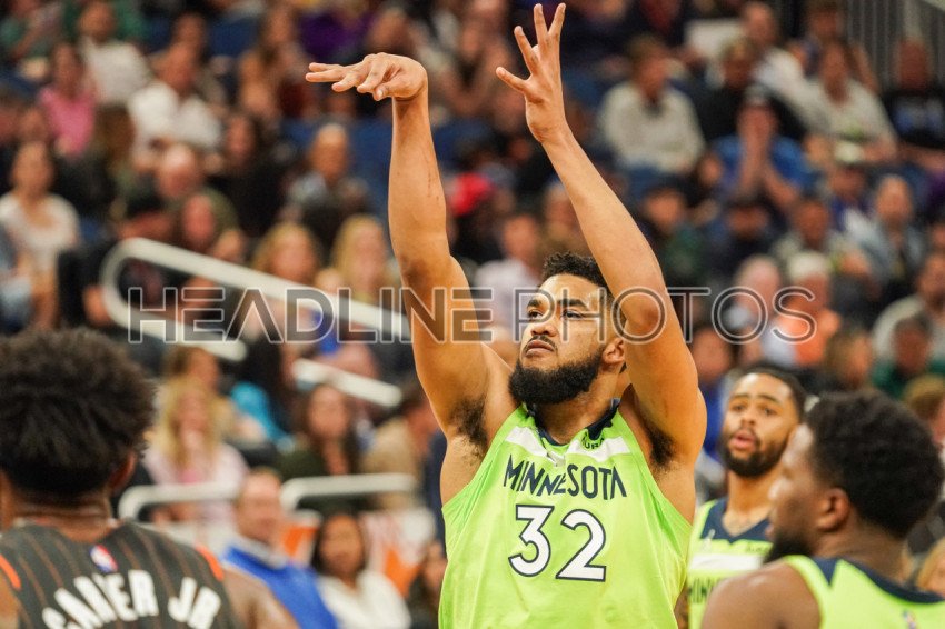 Orlando, Florida, USA, March 11, 2022, Minnesota Timberwolves Center Karl-Anthony Towns #32 shoots a free throw during the first half at the Amway Center. (Photo Credit: Marty Jean-Louis)