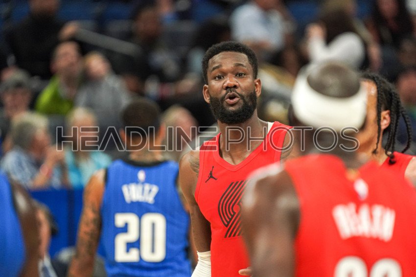 Orlando, Florida, USA, April 1, 2024, Portland Trail Blazers center Deandre Ayton #2 speaking with his team mates in the first half at the Kia Center. (Photo Credit: Marty Jean-Louis)