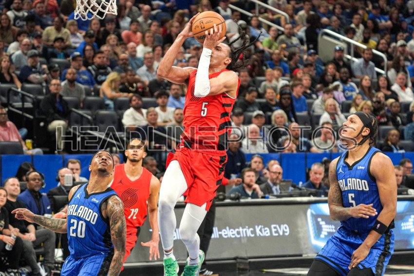 Orlando, Florida, USA, April 1, 2024, Portland Trail Blazers guard Dalano Banton #5 attempt to score in the first at the Kia Center. (Photo Credit: Marty Jean-Louis)