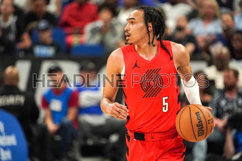 Orlando, Florida, USA, April 1, 2024, Portland Trail Blazers guard Dalano Banton #5 rushes forward in the first at the Kia Center. (Photo Credit: Marty Jean-Louis)