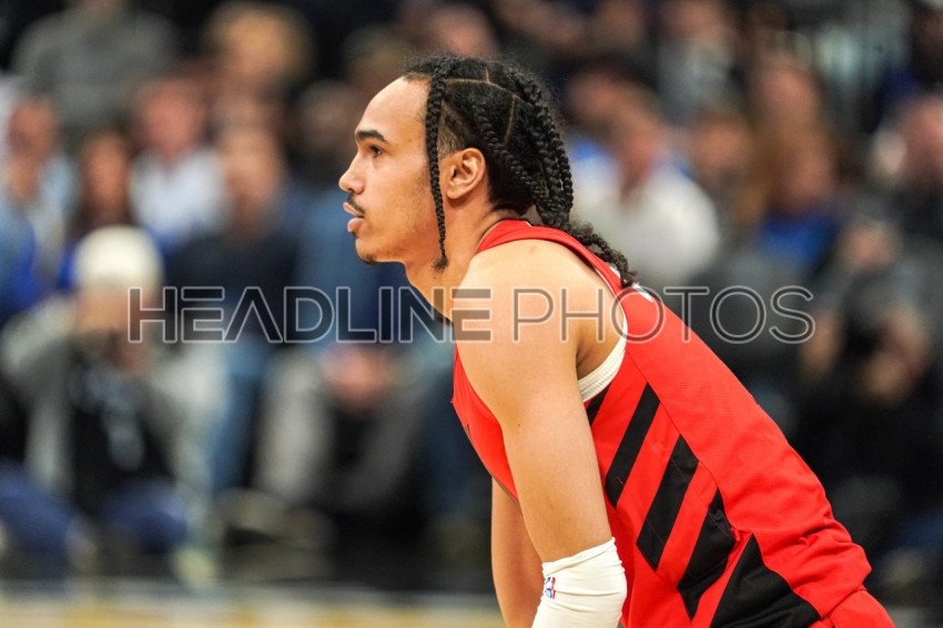 Orlando, Florida, USA, April 1, 2024, Portland Trail Blazers Dalano Banton #5 during the first half to the net at the Kia Center. (Photo Credit: Marty Jean-Louis)