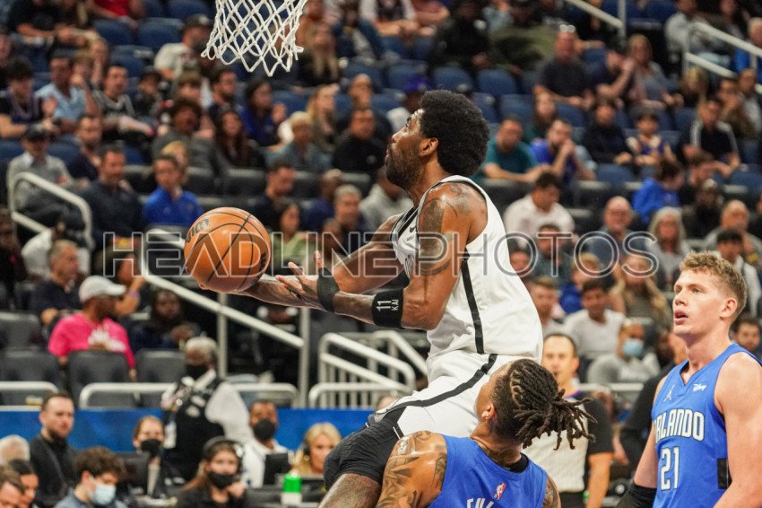 Orlando, Florida, USA, March 15, 2022, Brooklyn Nets Point Guard Kyrie Irving #11 attempt to make a shot during the first half at the Amway Center. (Photo Credit: Marty Jean-Louis)