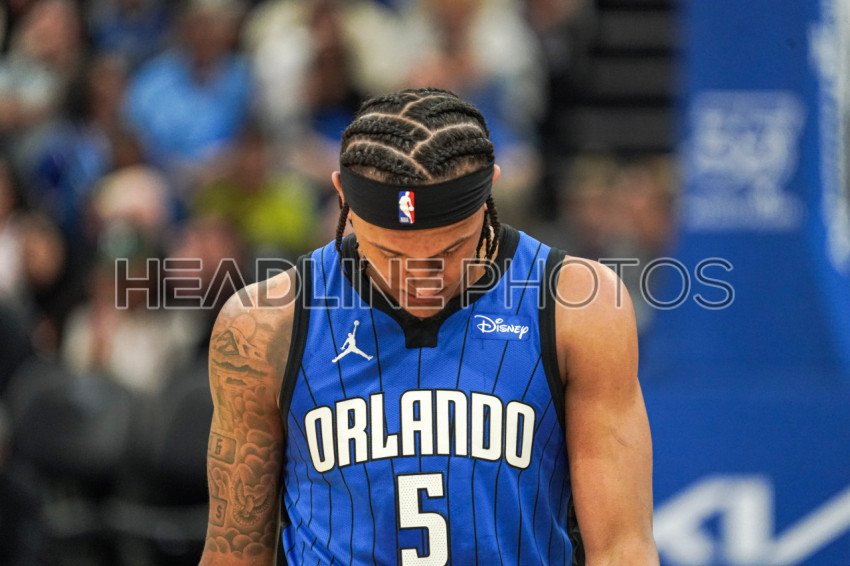 Orlando, Florida, USA, April 1, 2024, Orlando Magic forward Paolo Banchero #5 with his head down during the game at the Kia Center. (Photo Credit: Marty Jean-Louis)