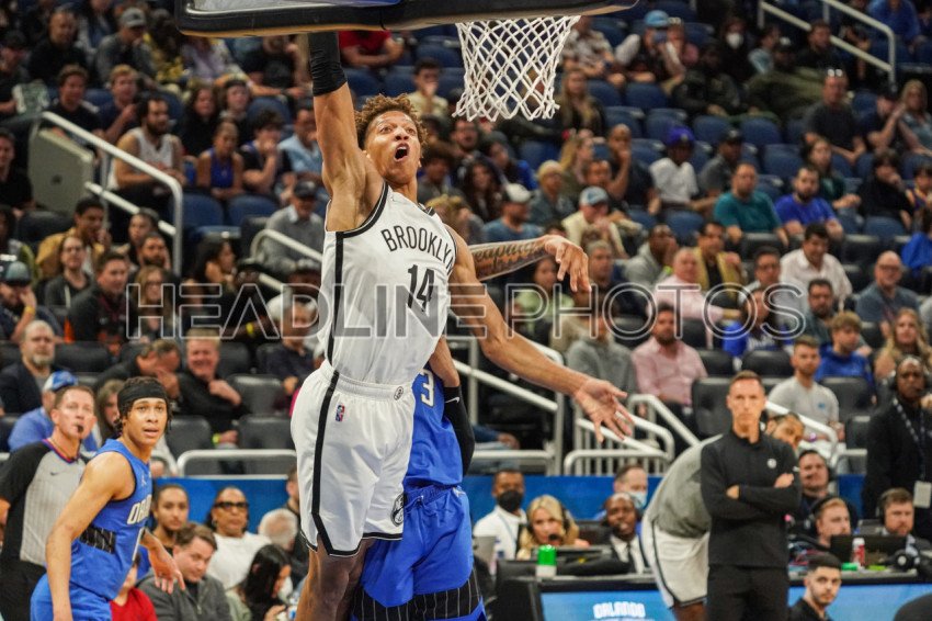 Orlando, Florida, USA, March 15, 2022, Brooklyn Nets Small Forward Kessler Edwards #14 makes a dunk against the Orlando Magic at the Amway Center. (Photo Credit: Marty Jean-Louis)