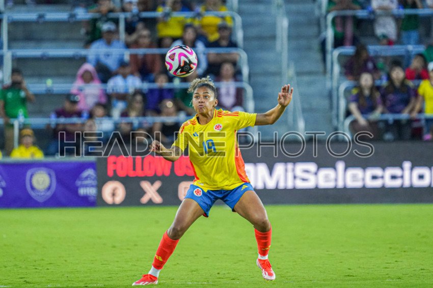 Orlando, Florida, April 6, 2024, Colombia defender Jorelyn Carabali #19 receives a pass in a Friendly Match at Inter&Co Stadium. (Photo Credit: Marty Jean-Louis)