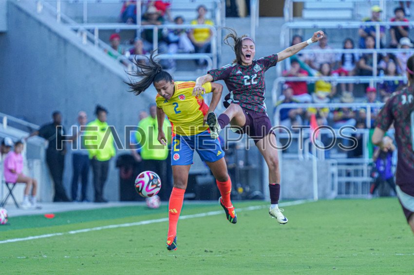 Orlando, Florida, April 6, 2024, Manuela Venegas #2 and Karen Luna #22 fight for the header in a Friendly Match at Inter&Co Stadium. (Photo Credit: Marty Jean-Louis)
