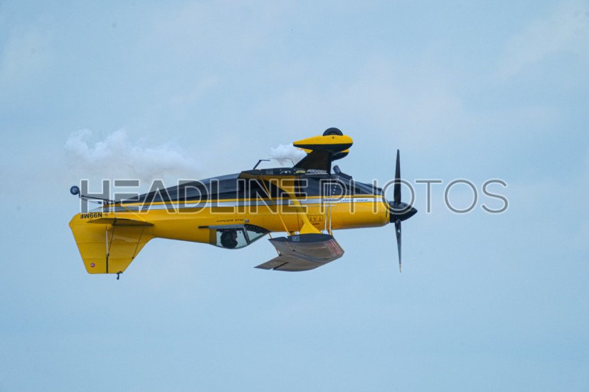 Sanford, Florida, USA, April 21, 2024, Pilot Michael Goulian flies his Cirrus SR22 plane During the 2024 Orlando Air Show at the Orlando, Sanford International Airport. (Photo Credit: Marty Jean-Louis)