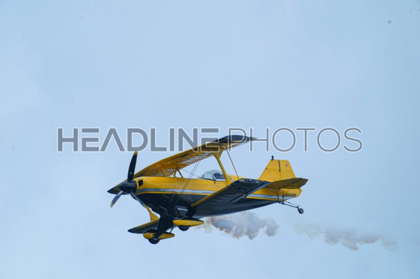 Sanford, Florida, USA, April 21, 2024, Pilot Michael Goulian flies his Cirrus SR22 plane During the 2024 Orlando Air Show at the Orlando, Sanford International Airport. (Photo Credit: Marty Jean-Louis)