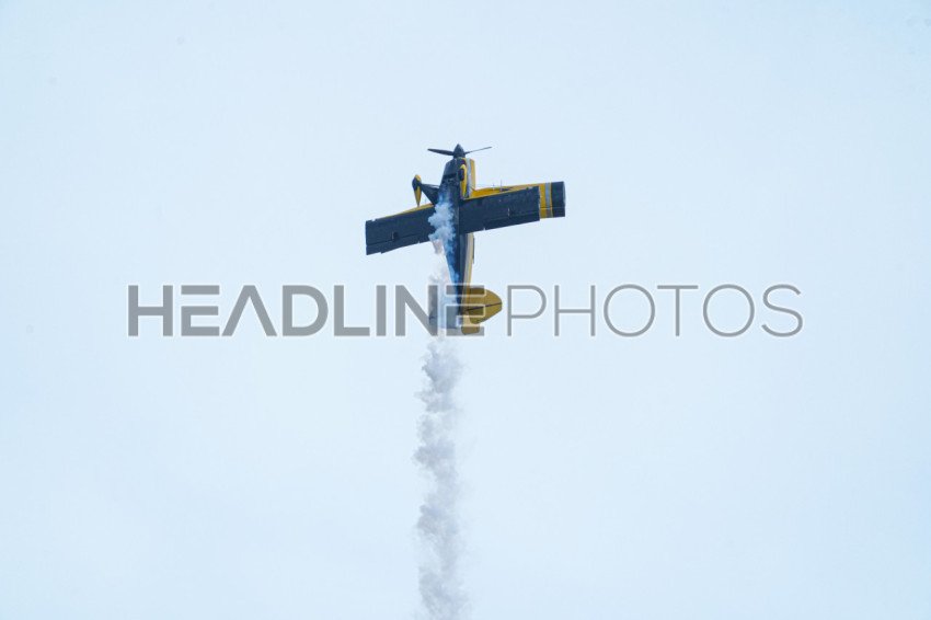 Sanford, Florida, USA, April 21, 2024, Pilot Michael Goulian flies his Cirrus SR22 plane During the 2024 Orlando Air Show at the Orlando, Sanford International Airport. (Photo Credit: Marty Jean-Louis)