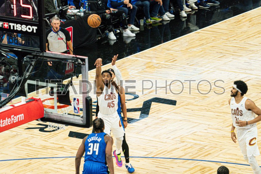 Orlando, Florida, USA, April 22, 2024, Cleveland Cavaliers guard Donovan Mitchell #45 attempt to score during the NBA Playoff at the Kia Center. (Photo Credit: Marty Jean-Louis)