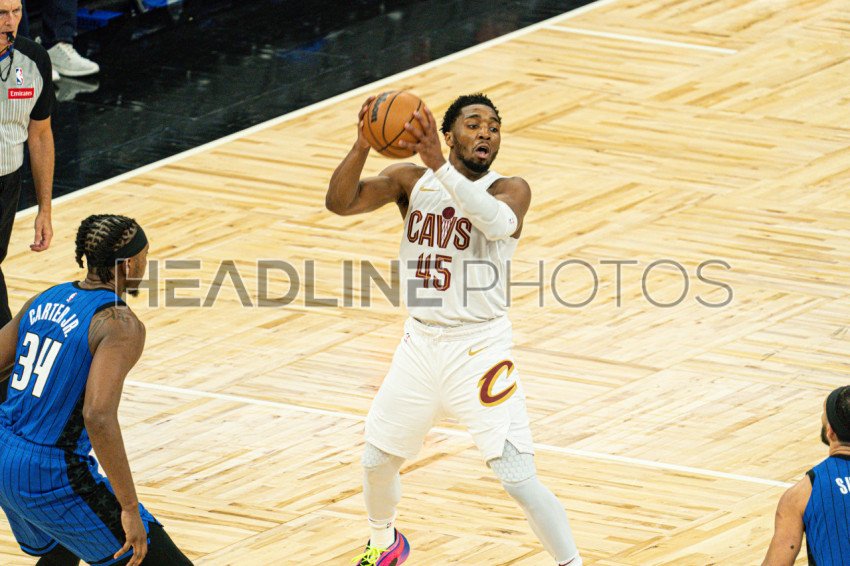 Orlando, Florida, USA, April 22, 2024, Cleveland Cavaliers guard Donovan Mitchell #45 during the NBA Playoff at the Kia Center. (Photo Credit: Marty Jean-Louis)