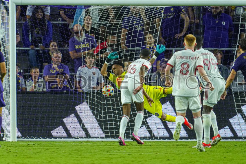 Orlando, Florida, USA, April 27, 2024, Orlando City SC goalkeeper Pedro Gallese #1 attempt to make a save at Inter&Co Stadium. (Photo Credit: Marty Jean-Louis)