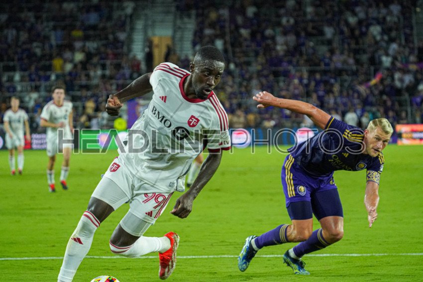 Orlando, Florida, USA, April 27, 2024, Toronto FC forward Adama Diomande runs up field at Inter&Co Stadium. (Photo Credit: Marty Jean-Louis)