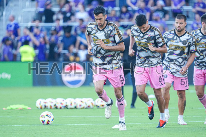 Orlando, Florida, USA, May 15, 2024, Inter Miami players Sergio busquets #5, Tomas Aviles #6, Marcelo Weigandt #57 warms up at Inter&Co Stadium. (Photo Credit: Marty Jean-Louis)