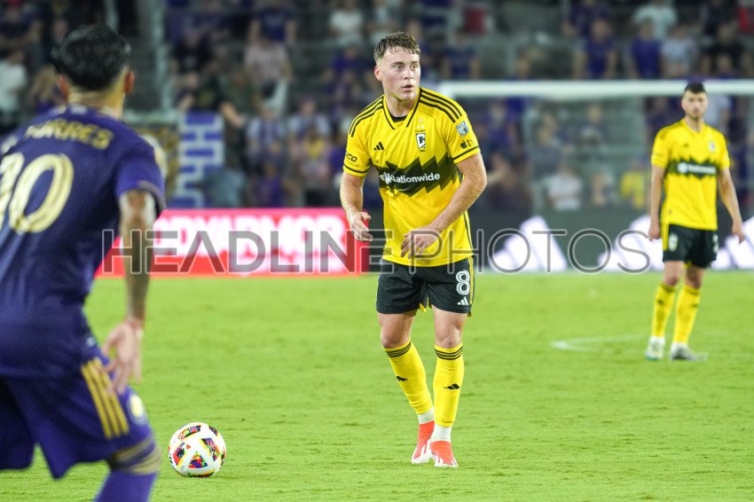 Orlando, Florida, USA, May 25, 2024, Columbus Crew player Aidan Morris #8 look to make a pass at Inter&Co Stadium. (Photo Credit: Marty Jean-Louis)