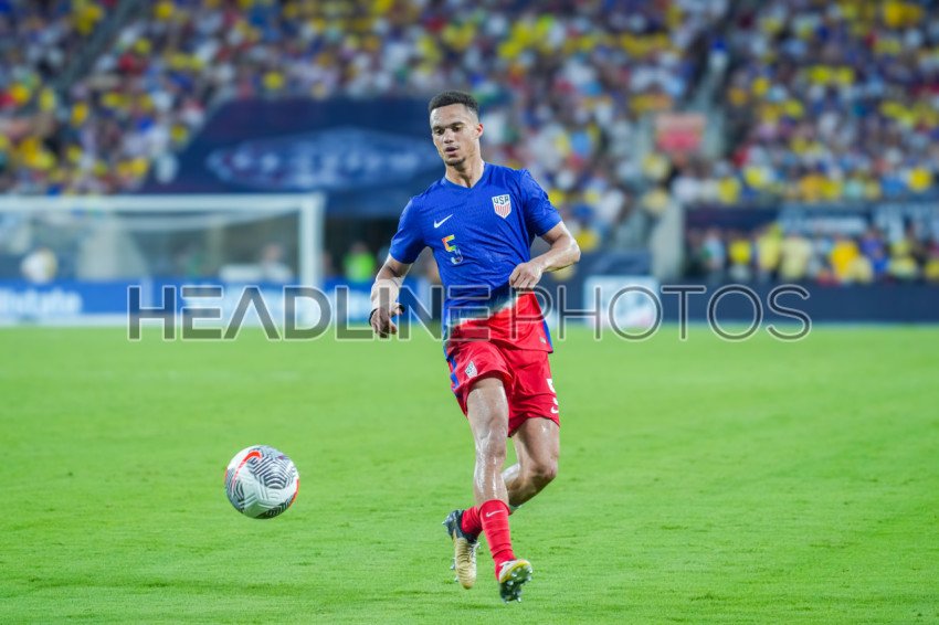 Orlando, Florida, June 12, 2024, USA defender Antonee Robinson #5 runs up field at Camping World Stadium. (Photo Credit: Marty Jean-Louis)